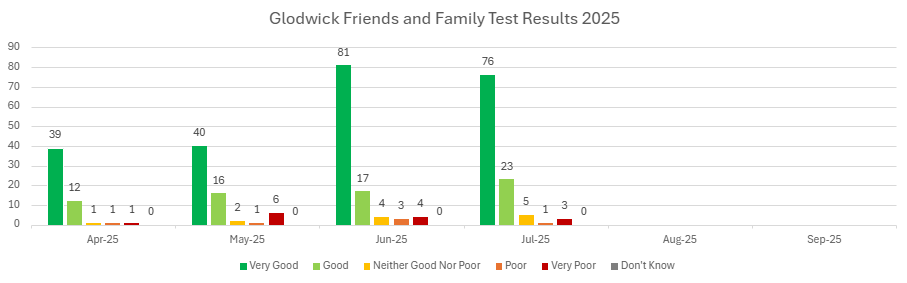 We are delighted at this months results of our Friends and Family test at 91% of the submissions being rated Good or Very good.